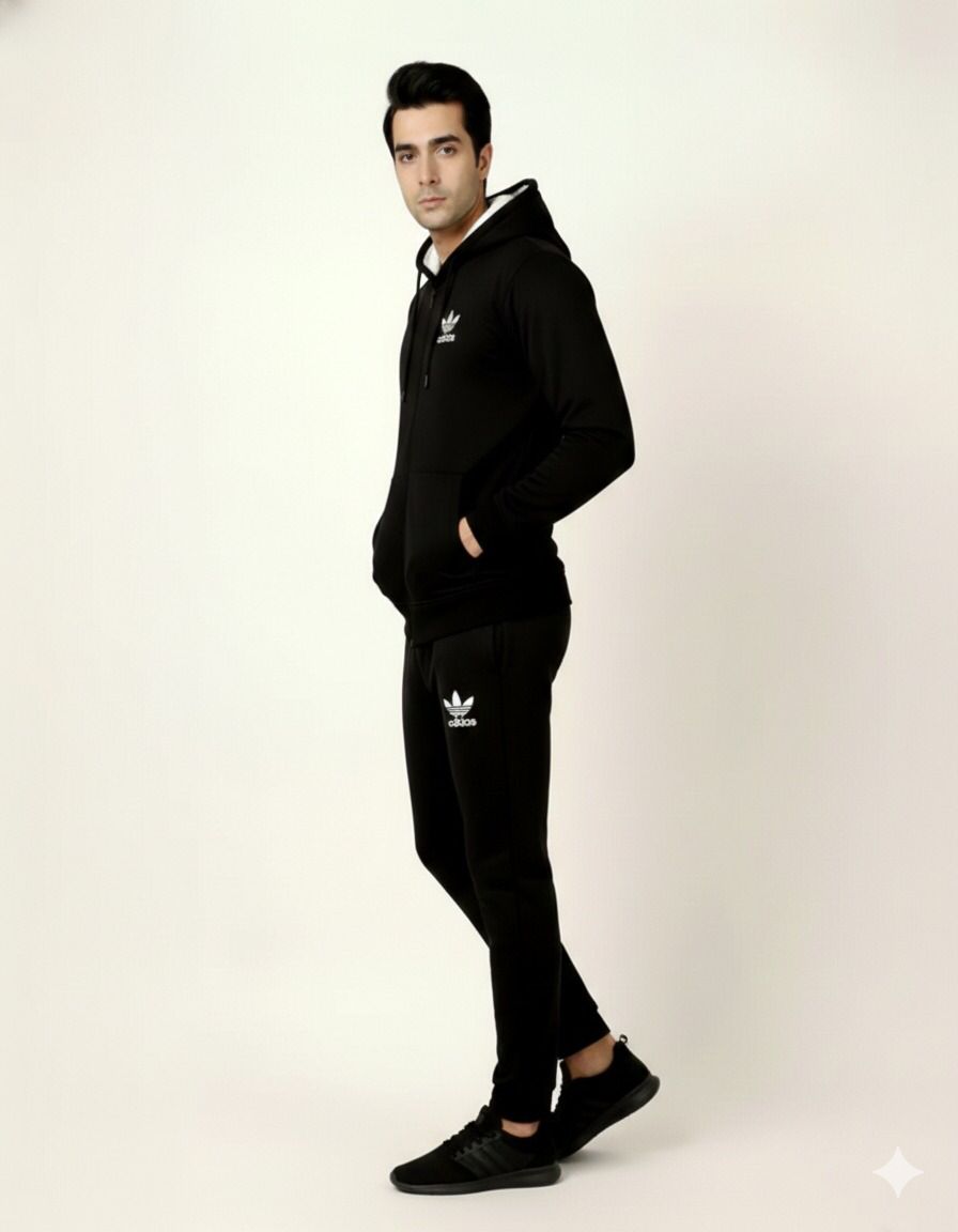 2 Pcs Men's Fleece Plain Zipper Track Suit