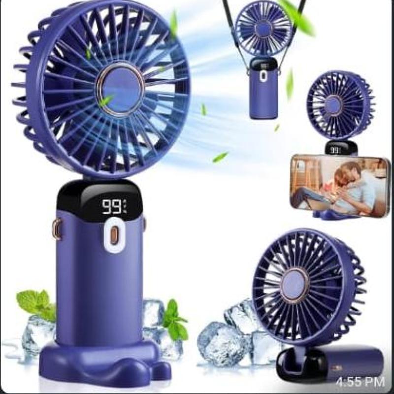 Foldable USB Neck Hanging Fan 5 Speed USB Fan Led Display Screen Rechargeable With Phone Stand